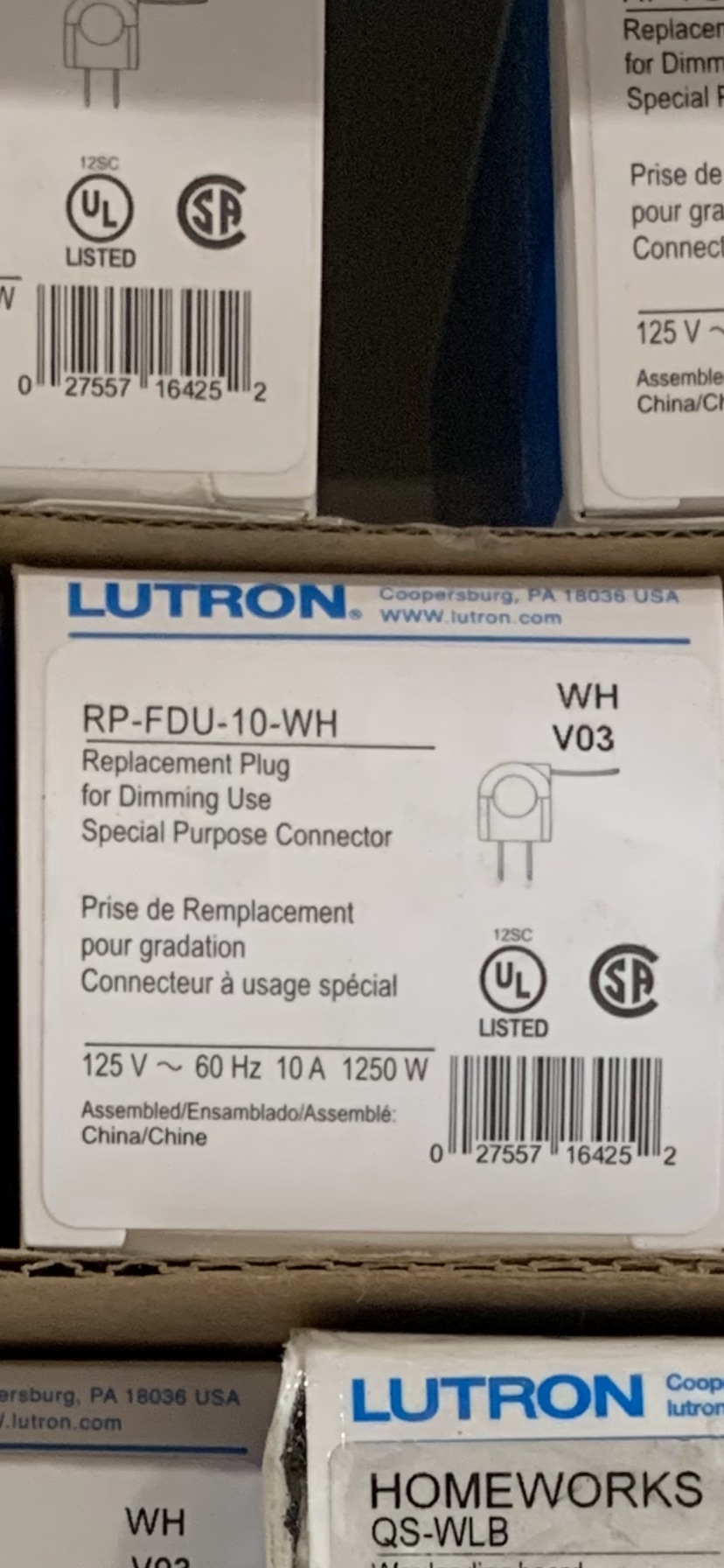 Lutron Cord Plug Replacement RP-FDU-10-WH
