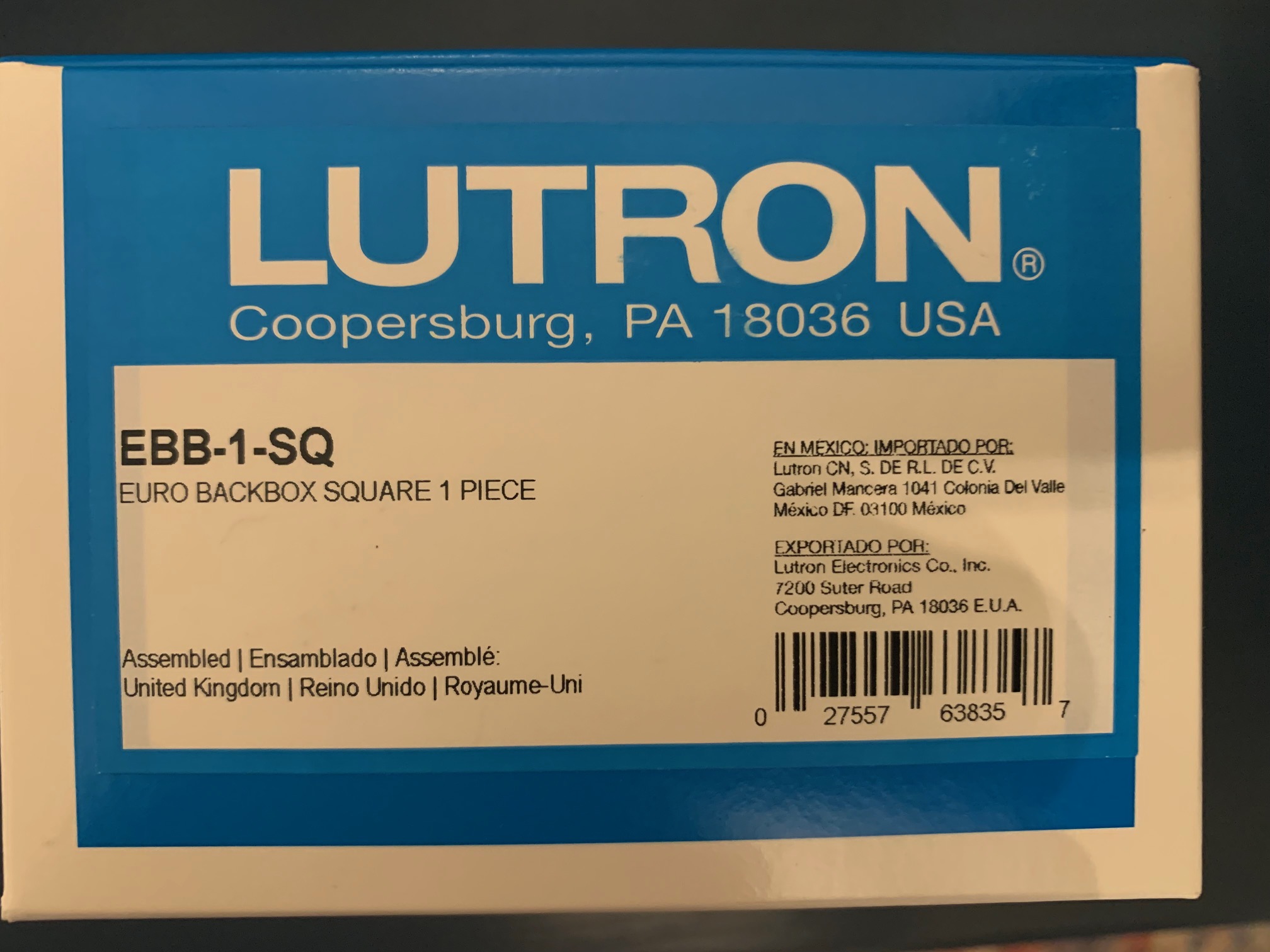Lutron Euro Style Box EBB-1-SQ In Original Box