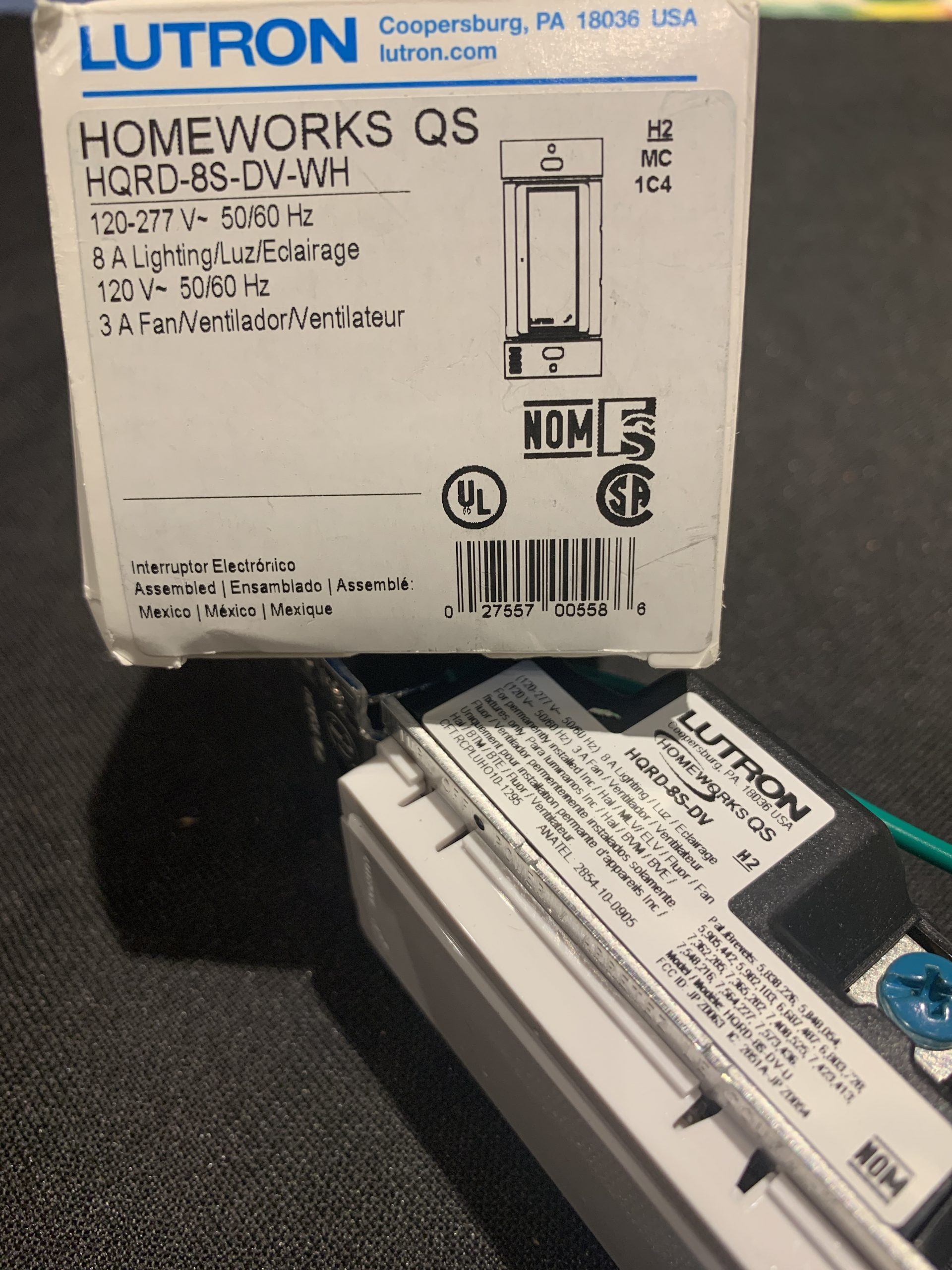 Lutron HomeWorks QS & QSX Dual Voltage Switch HQRD-8S-DV-WH 120/277V. Does not require a neutral connection. 8 APMS switch