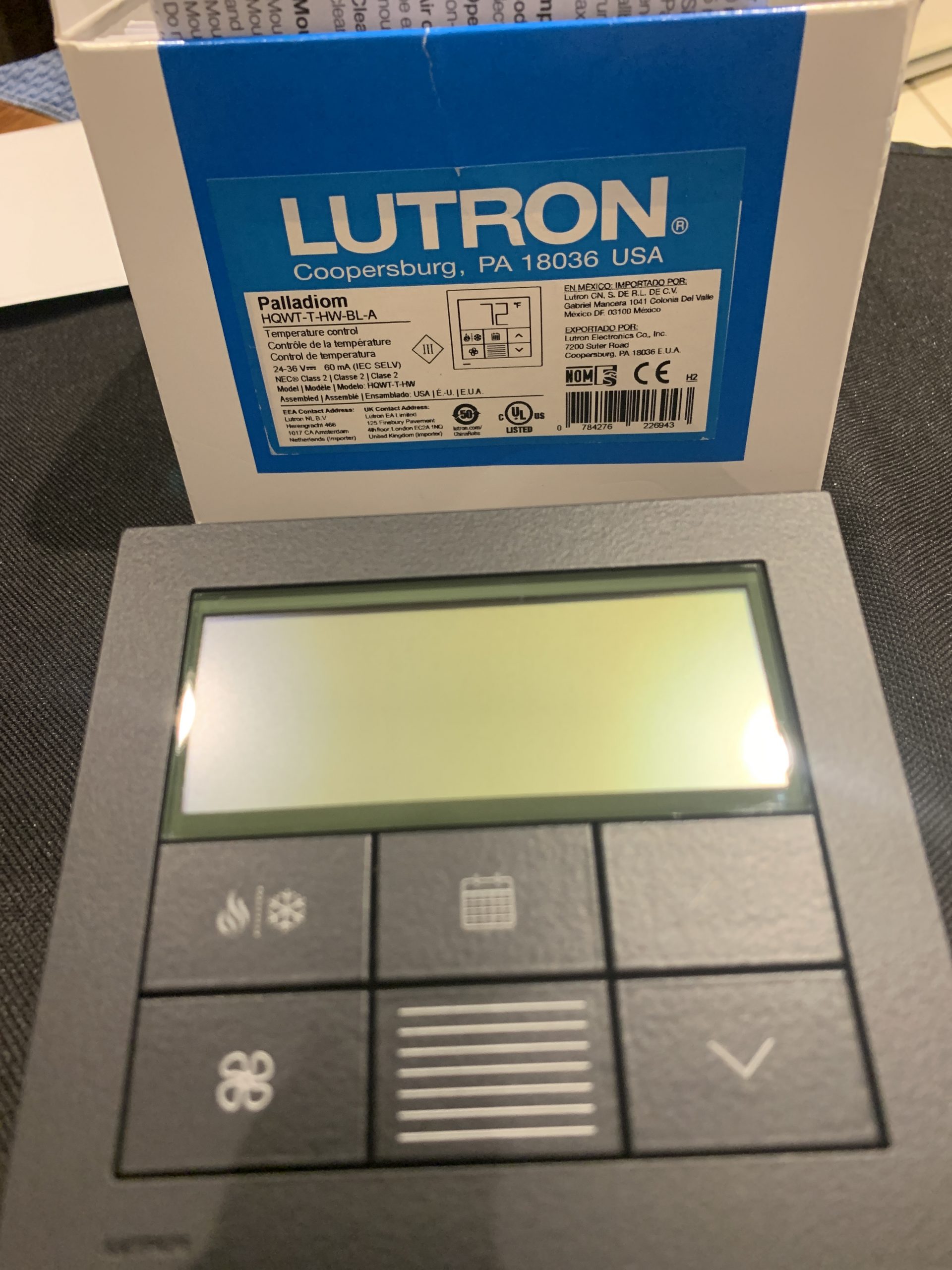 Lutron Palladiom Thermostat HQWT-T-HW-BL-A – Black Plastic In original box never installed. Works with Lutron HomeWorks QS and QSX